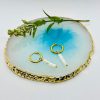 Pendientes de acero dorado con piedras celestes y agarre de estrella