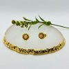 Pulsera de acero dorado con piedra color verde agua, cadena brilli y motivo sol
